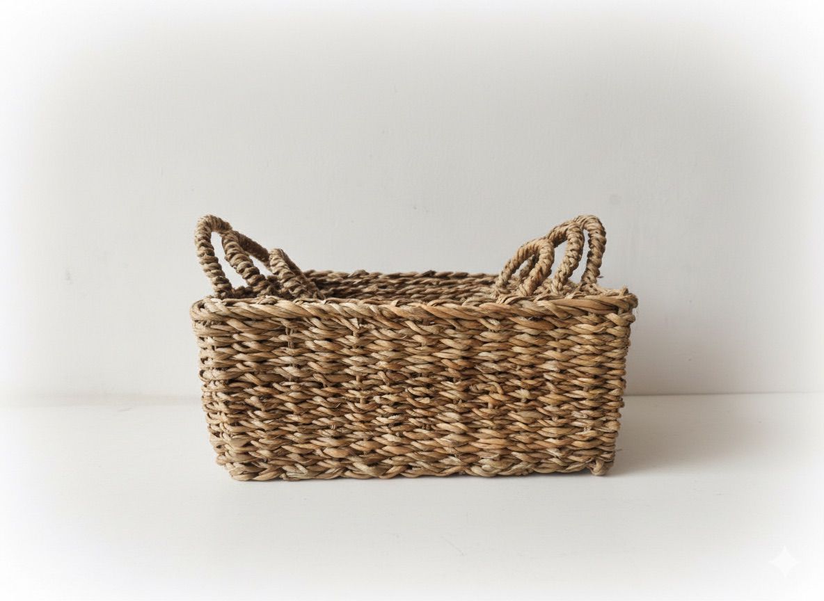 Storage basket made of braided seagrass in natural shade. Handles on both sides. Since this item is made of a natural material, the appearance may be different for each piece.